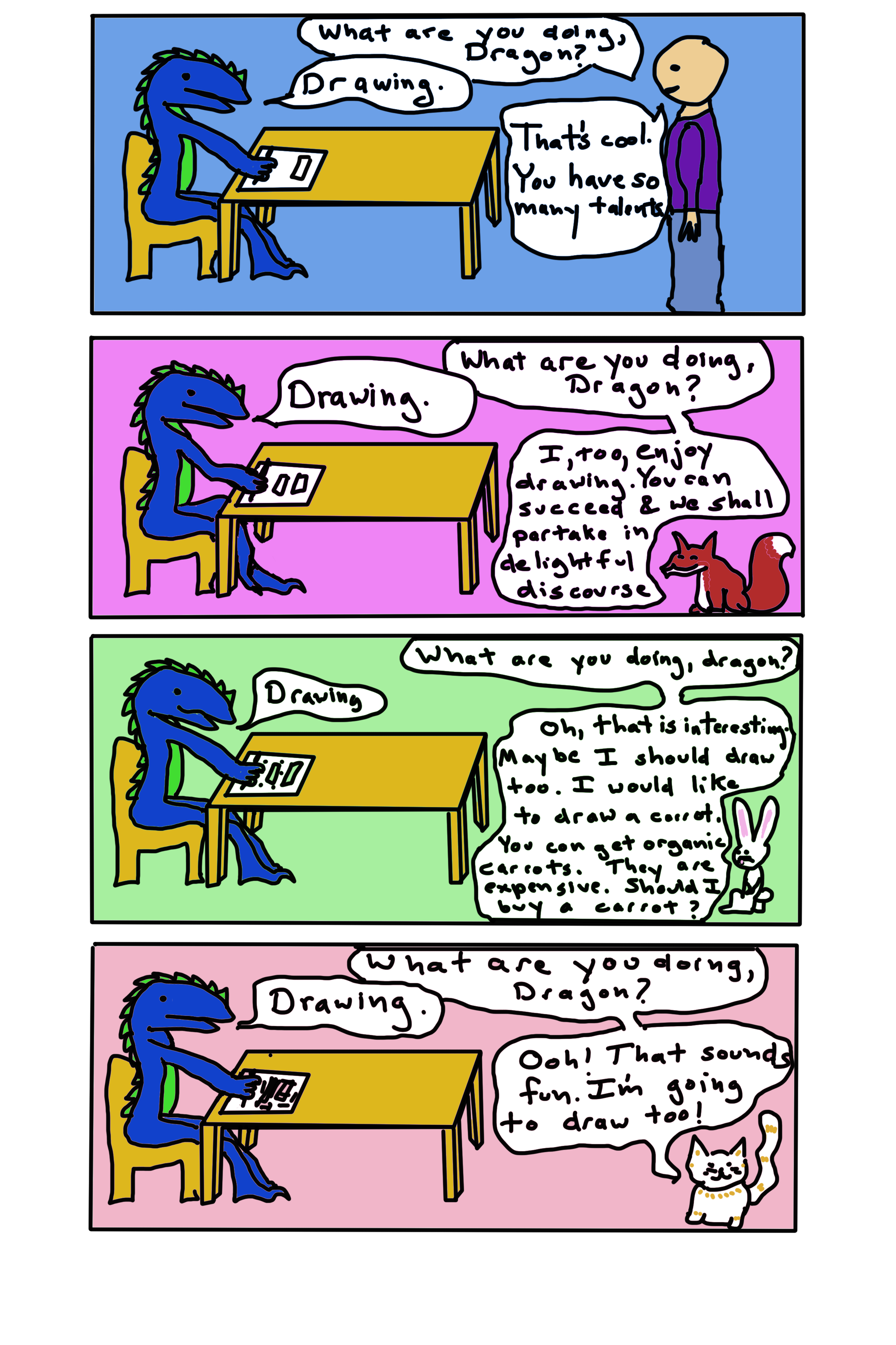 The thing is, I tried to commit to this blog for the purpose of seeing things through. Otherwise, I’d probably just chuck this image, give it up as too hard and feel like I hadn’t done anything creative today. I might tell myself I’d finish it later and probably not follow through. Promising myself to post something new every day gives me the freedom to suck. I don’t think this picture sucks, per se. It’s just that my skill doesn’t match my vision, and I’m impatient, and learning new things feels new and unusual still after spending almost 30 years obsessively focusing on learning one skill.
