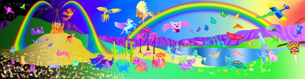 It was nice that they paid me, since I don’t usually get paid for the work I do here (the only other time was the giant blue Morpho butterfly and parrot commission that was later destroyed by kids) even though it worked out to substantially less than minimum wage. At least I’m getting paid to paint.