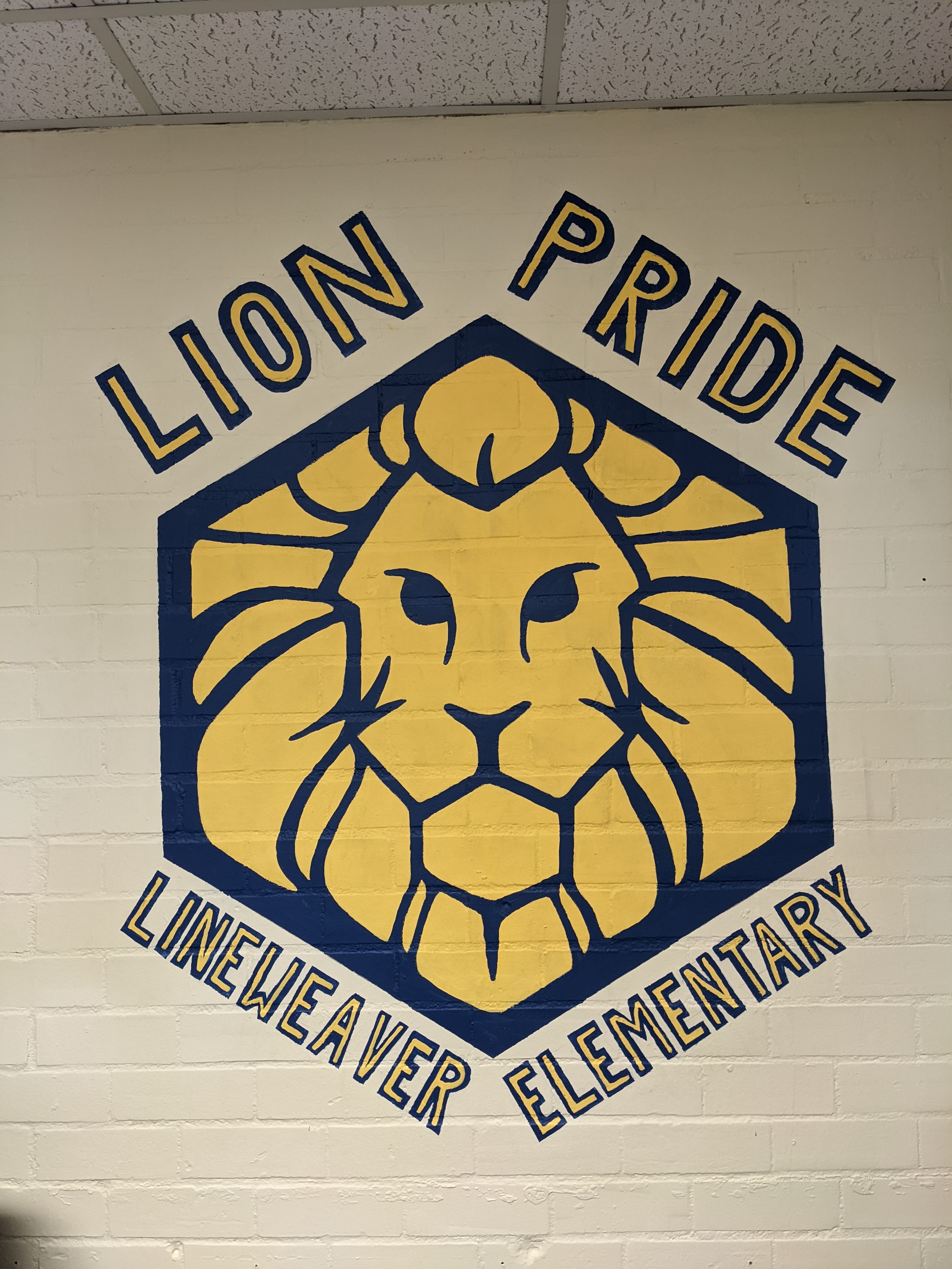 This is my most recent commission, finished a few minutes ago: the school logo (not my design, I copied it from another wall in the school) 5 feet high in the vice principal’s office. It took about 12 hours, not counting the time I spent waiting for the paint to dry before I changed colors.