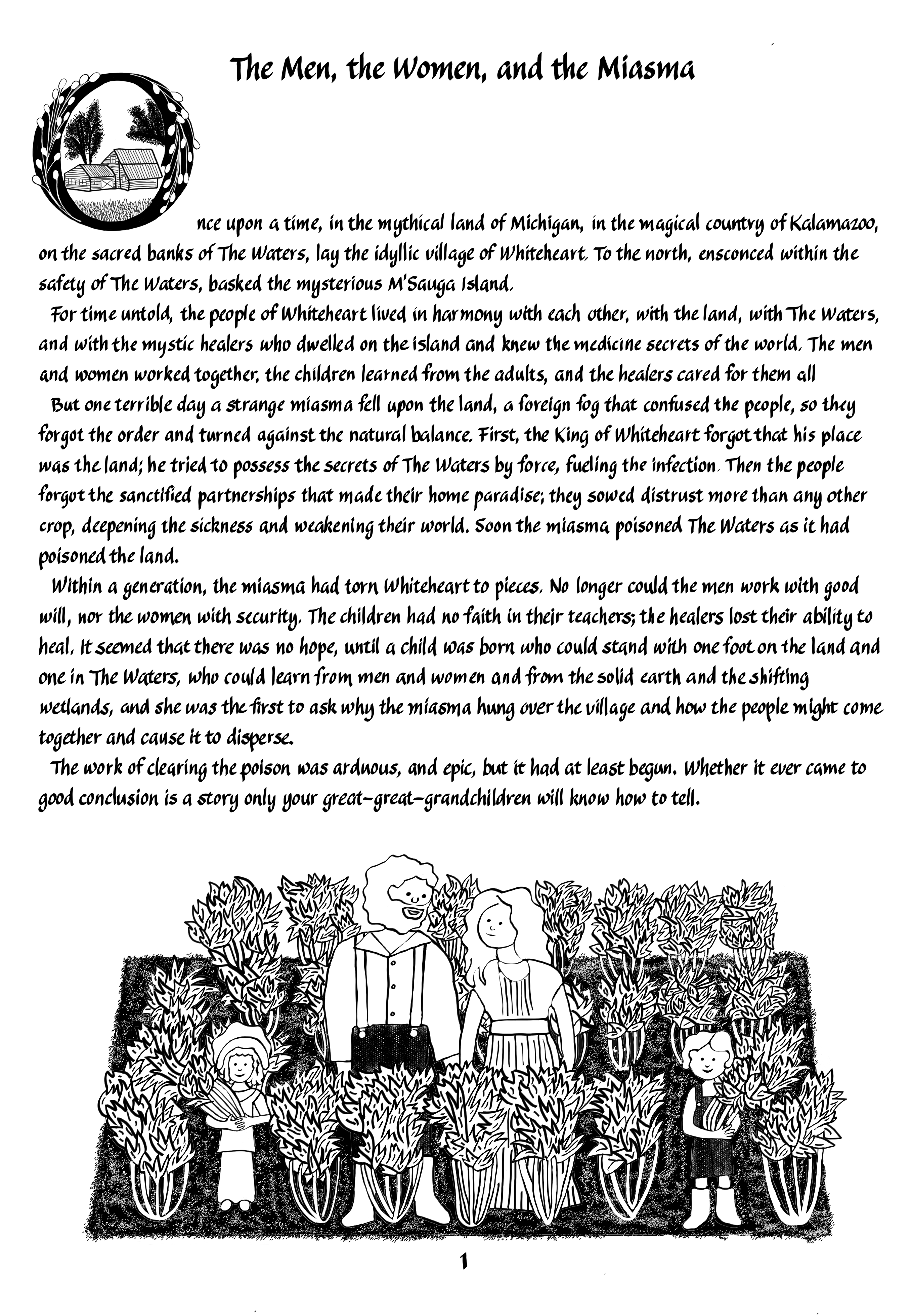 Long time readers will note that I employed a completely different style of art than I used for the 4 previous volumes. When I originally envisioned this project, I expected to draw a lot more symbols that specifically sprung from the pages of The Waters; in the long run, the style choices I made precluded that type of detail, but I did feel pretty strongly that this page, at least, needed to feature a LOT of celery.