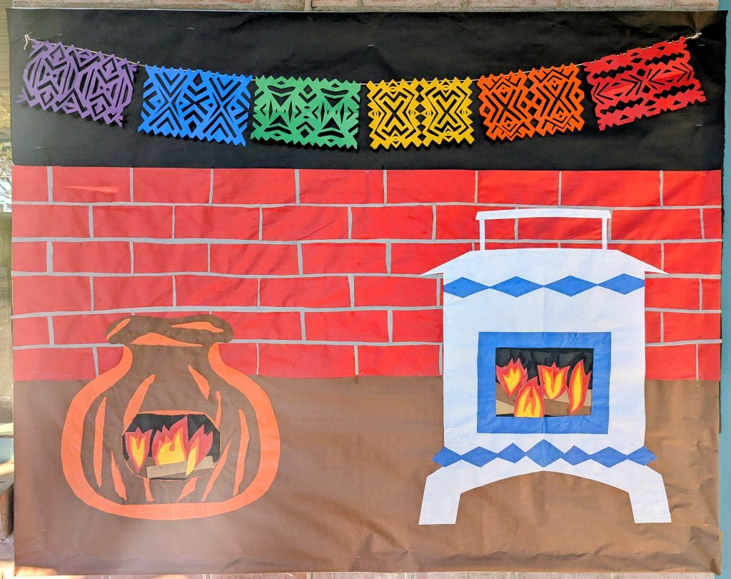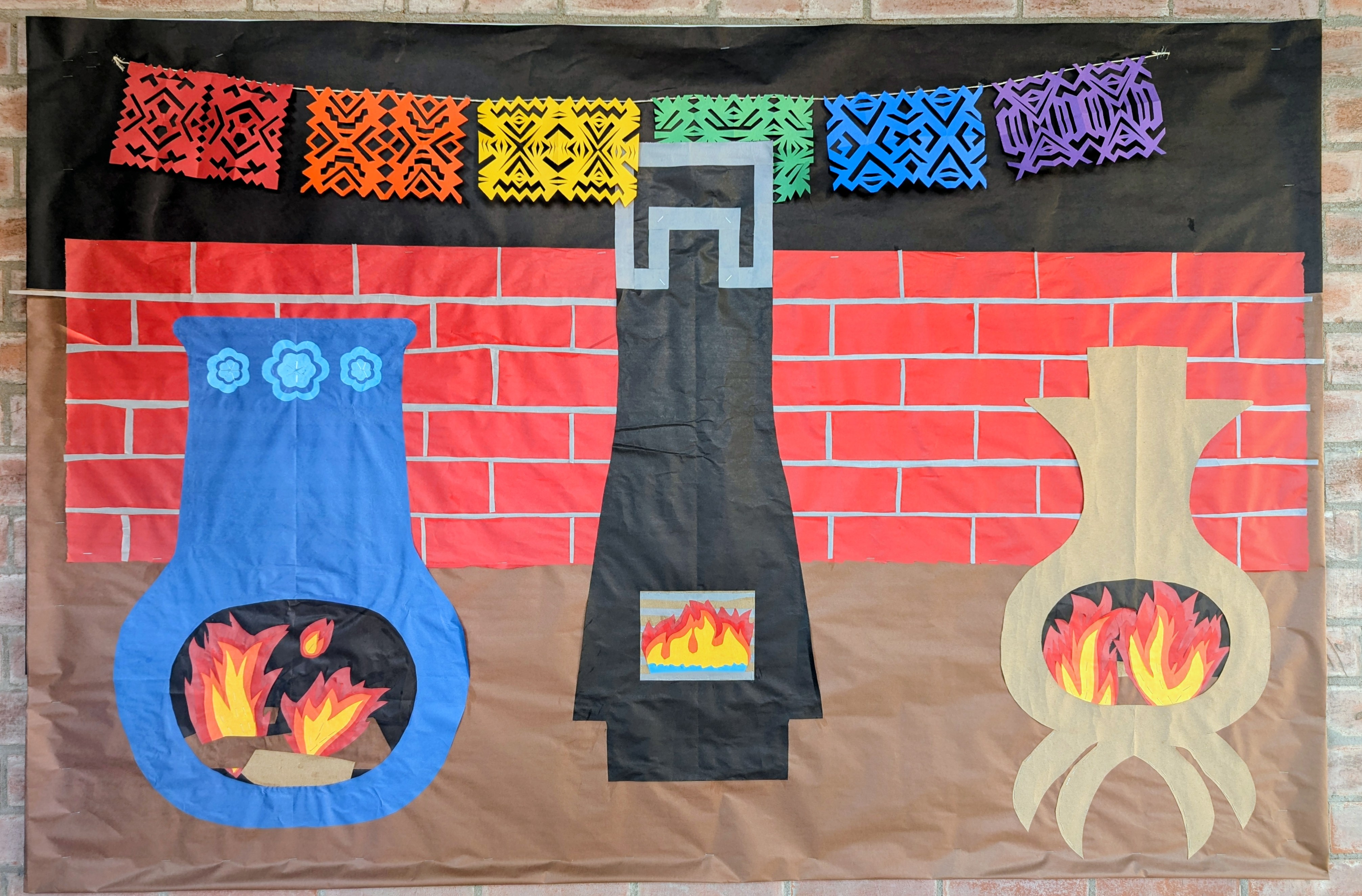 I noticed the kinders all putting their hands up to the fires like they were trying to warm up. I must add that, even though it was cold when I had this idea, it was 82° when I finished and the kinders were pretending to warm their hands by the fire. That’s Tucson for you.