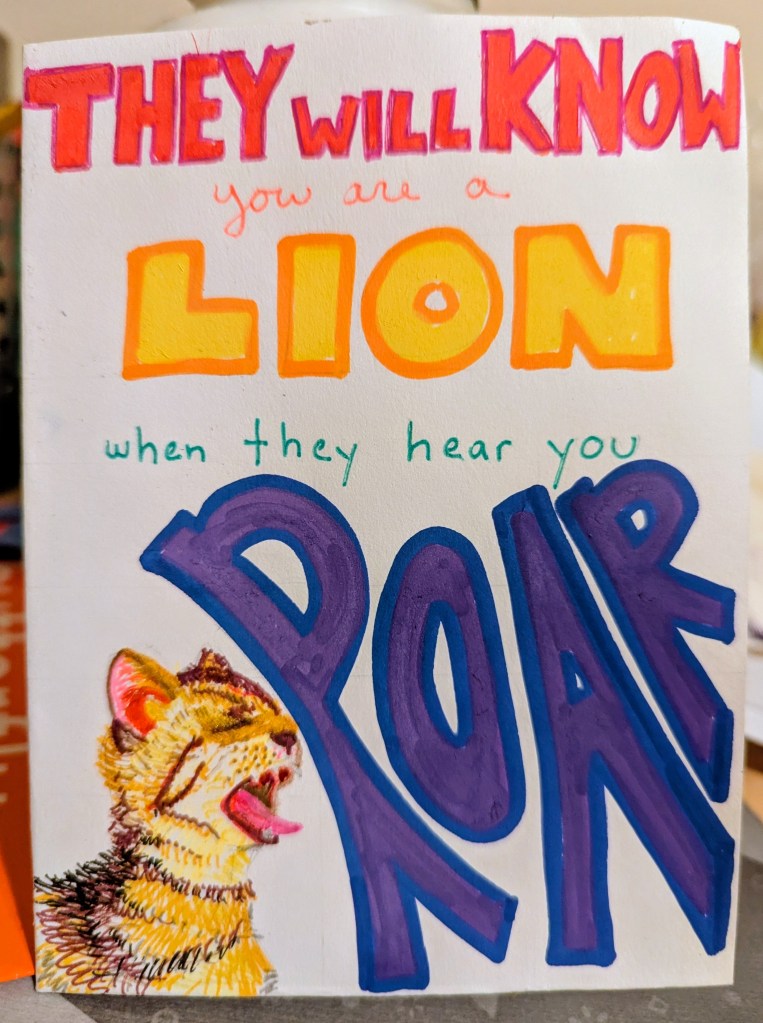 Our school mascot is a lion and this card is for the outgoing librarian, who sadly had to leave yesterday. But hopefully she carries the spirit of the lion with her wherever she goes.