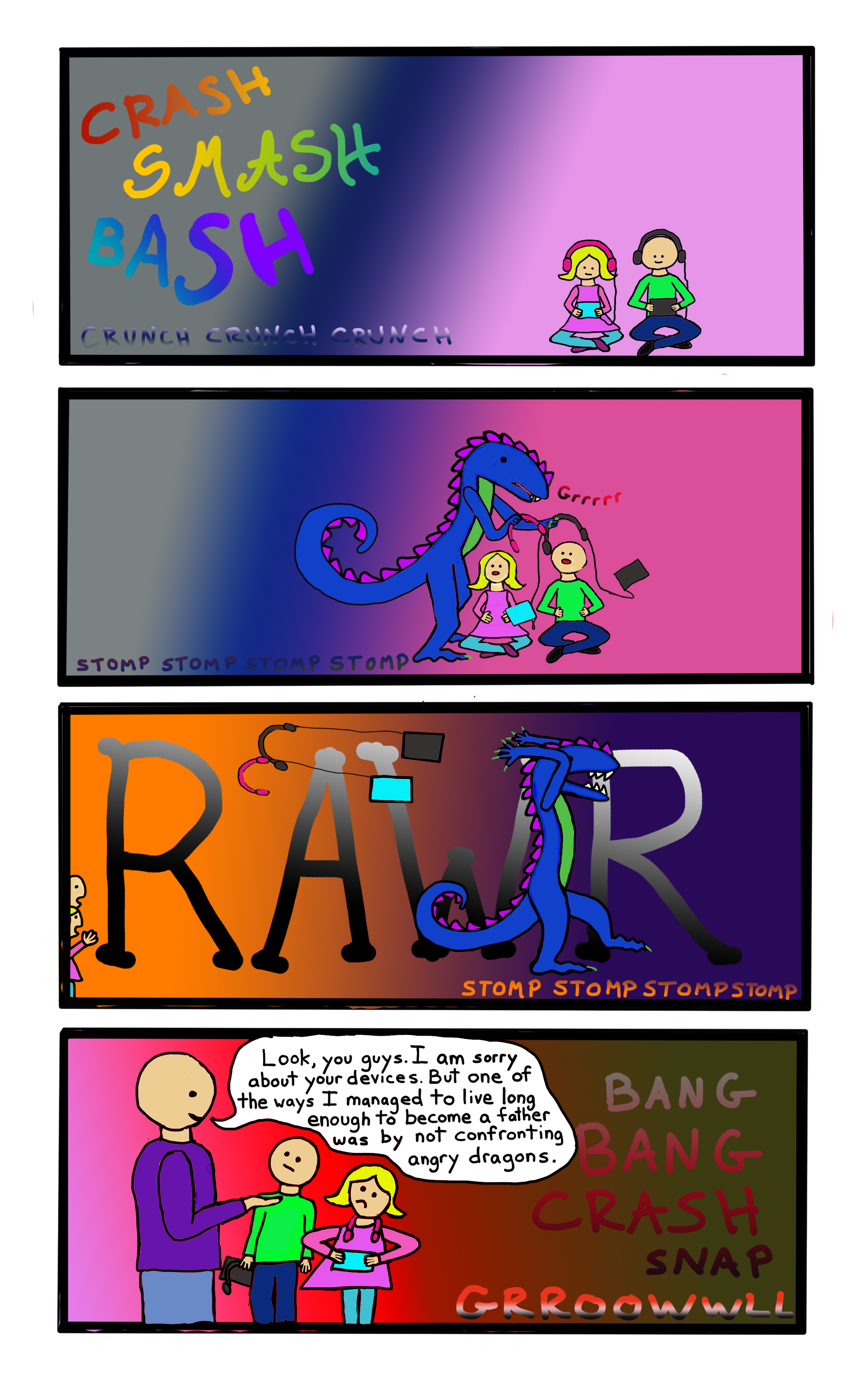 This comic belongs to The Man, as in, it’s his concept. I wrote the words and drew the picture, but the particular gag is his idea. Go, The Man! Just because I’m the funny one in the relationship doesn’t mean that he can’t be funny some of the time.