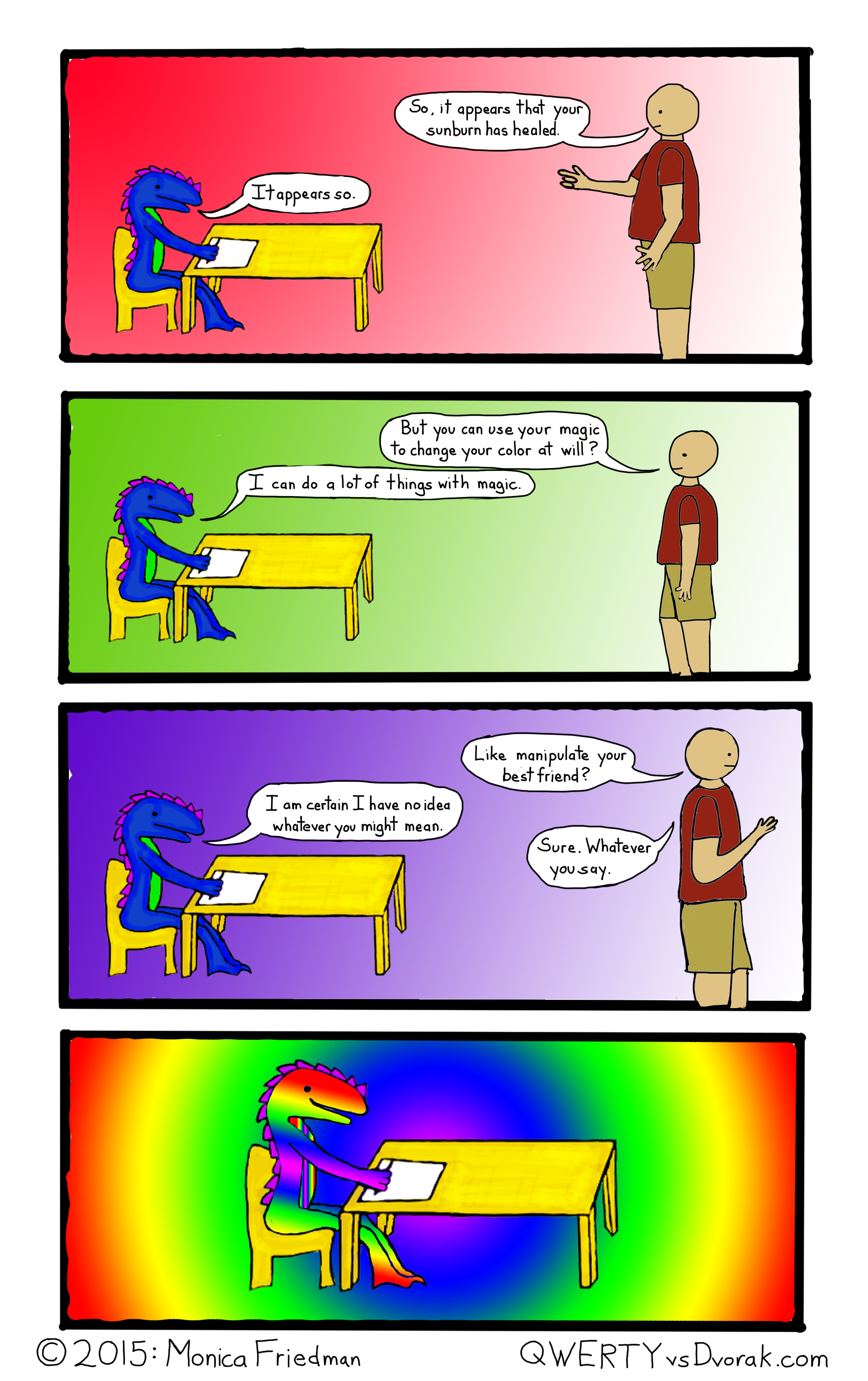 What else? This comic is based on a real life conversation I had with the Man. I can never tell if he’s serious, but apparently he felt left out because his comic persona was not invited to the fictional comic drawing party. Well, now you can all suffer through enjoy a week’s worth of the Man. Because he spends the most time with Dragon.