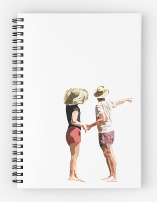 What I have instead, is a couple new product types in my RedBubble shop. It feels like they’re adding new stuff too fast for me to keep up. No sooner have I enabled one new kind of notebook for one product than they introduce a different kind of notebook. This spiral one looks pretty sturdy. It’s 6″ x 8″, 120 pages (ruled line or graph, your choice), and comes with a pocket in the back. Pictured here, My Sister and Brother-in-Law Look to the Future is very timely, as their wedding is fast approaching and my mother bought a bunch of these T-shirts for the grandkids on both sides to wear.