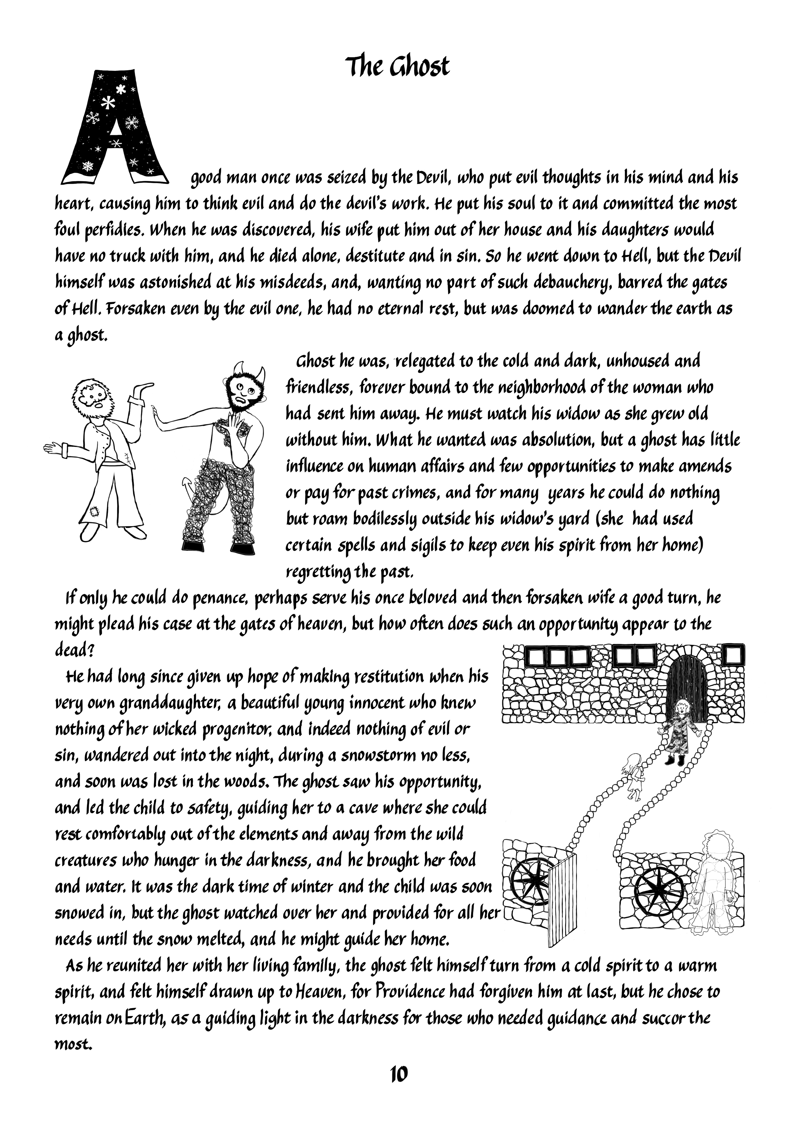 I haven’t said anything about the illuminated initial caps yet. I drew most of them before I drew the illustrations. Some of them I had a very clear vision and others I just sort of made it up as I went. I always knew that the first comic would start “Once upon a time,” and the initial cap would have a little farm scene with a barn inside.