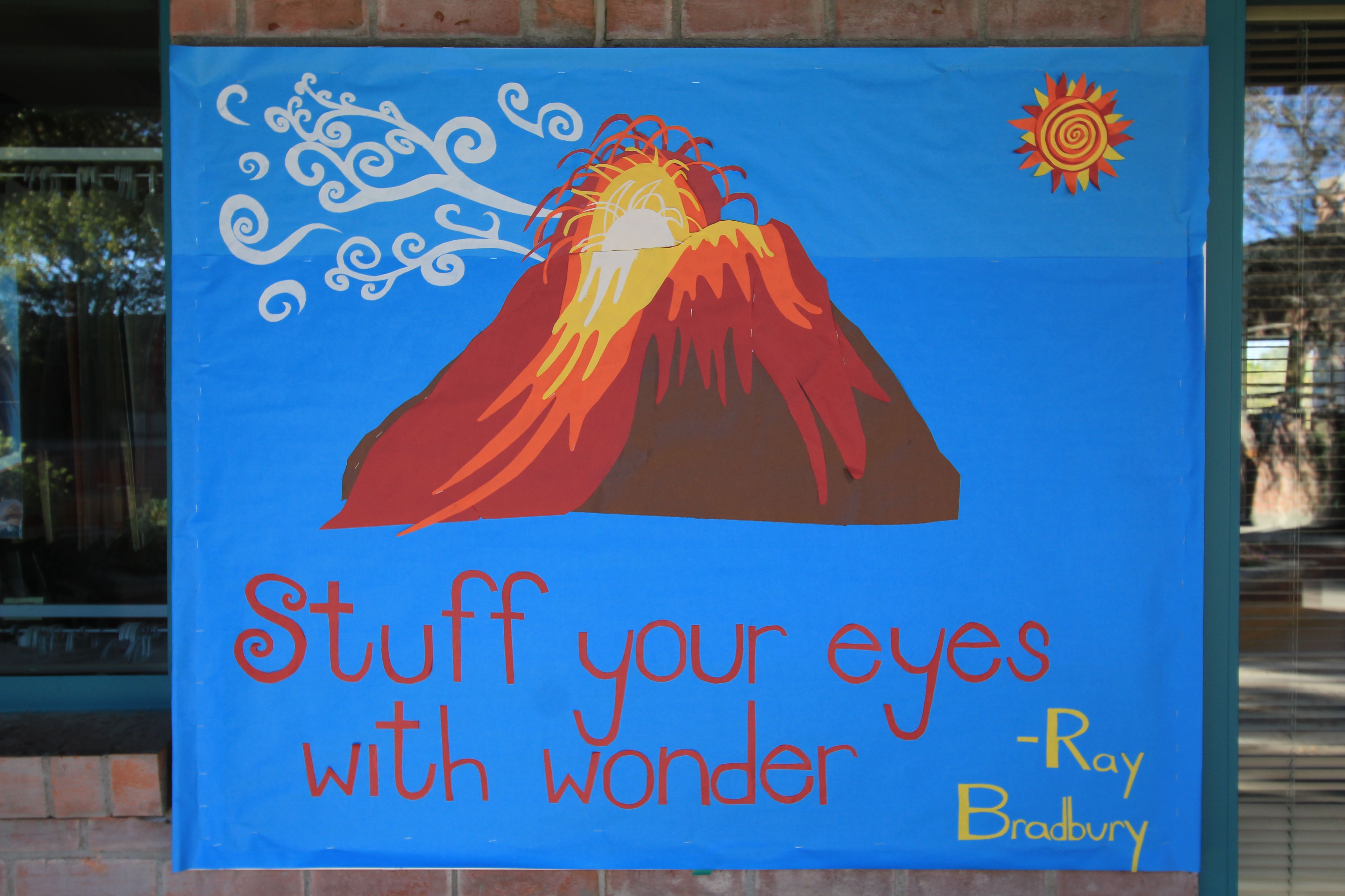 Once the volcano was up, there was a lot of extra space, so I made the crazy sun and the smoke. Time consuming but fun.